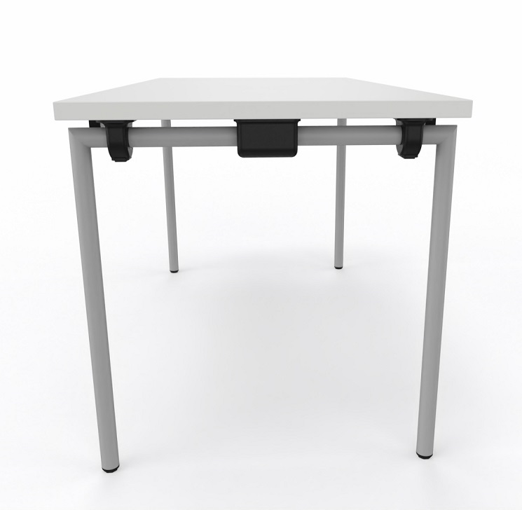 Seminar-Klapptisch KT2021 und T2020 mit besonders einfacher Handhabung durch Einhebelmechanik. Durch die fehlende Stützstrebe, wie sonst üblich, bietet dieser Klapptisch optimale Beinfreiheit.