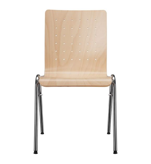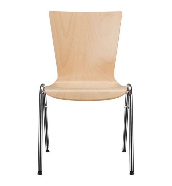 Holzsitzschale, Stuhl mit Stahlgestell in vielen Varianten, stapelbar. Besprechungsstühle mit neunfach verleimter Holzschale.