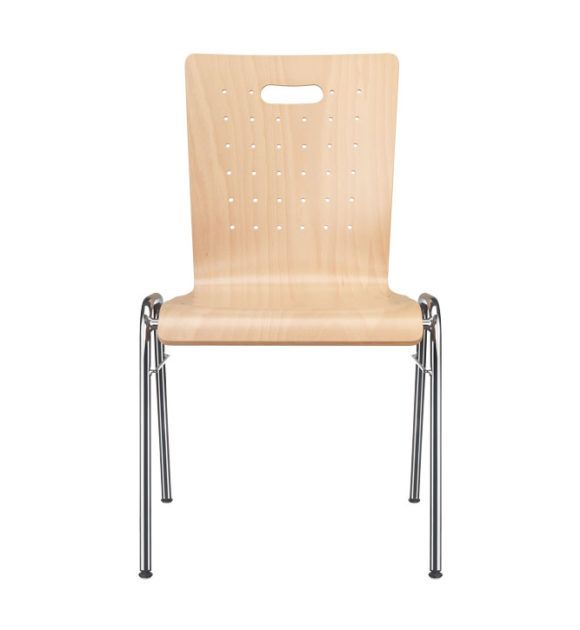 Stapelbar: alle Holzschalenstühle T-Gestell können bis zu einer Höhe von 20 Stühlen senkrecht gestapelt werden.